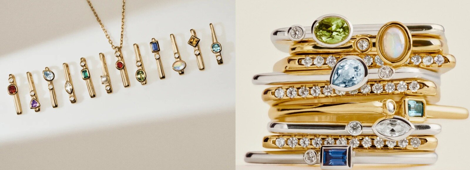 They have many gemstones available. Among their options are: rubies, emeralds, topaz, citrine, opals and many more. They also offer a wide variety of customizable pieces, where you can change the metal and the gemstone of the piece.
