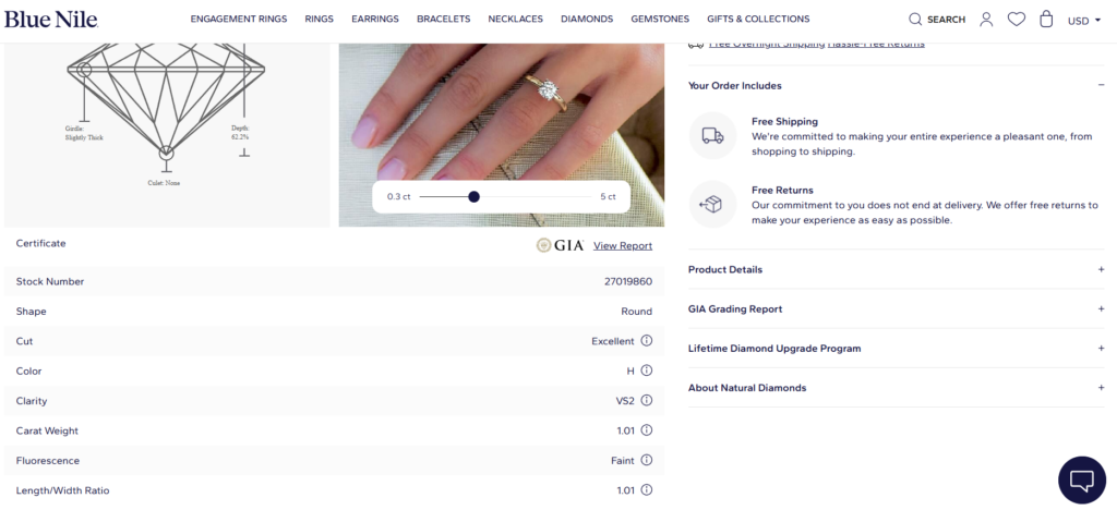 - A strong emphasis on gemologist reviews, including the idea that their gemologists will give a “thumbs up or down” based on what they’d tell a best friend