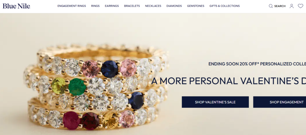 Blue Nile’s vibe is: “We’ve done this for a long time. We’ll make it easier.” They position themselves as a legacy online jeweler built around innovation, transparency tools, and customer care without making you feel like you need to become a part-time gemologist.